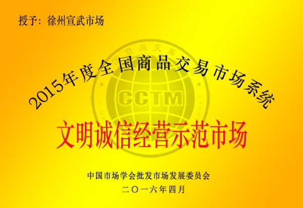 公司獲文明誠信經(jīng)營示范市場稱號
